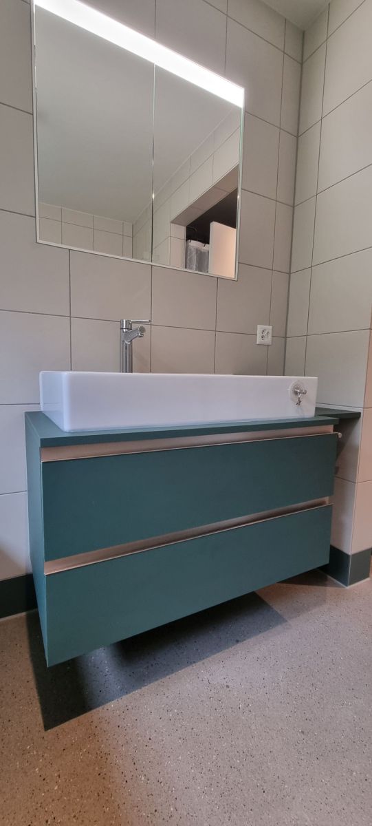 Das Bad, die Wohlfühloase. Wellnessferien zu Hause. Das Badezimmer erhält einen immer höheren Stellenwert. Nebst der Küche der wohl wichtigste Raum um sich was Gutes zu tun. Auch in diesem Bereich sind wir als Planer und Möbelschreiner die richtigen Ansprechpartner. Wir konzeptionieren komplette Badezimmerumbauten und übernehmen auch hier gerne die Terminplanung und Bauführung.