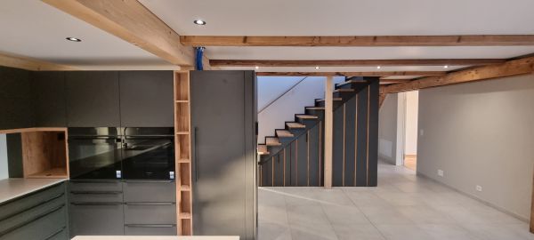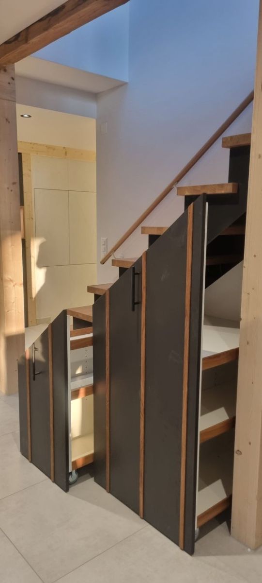 - Dabei durften wir die tolle Küche, die Stauraumschränke sowie die ausziehbaren Elemente unter der Treppe produzieren und montieren